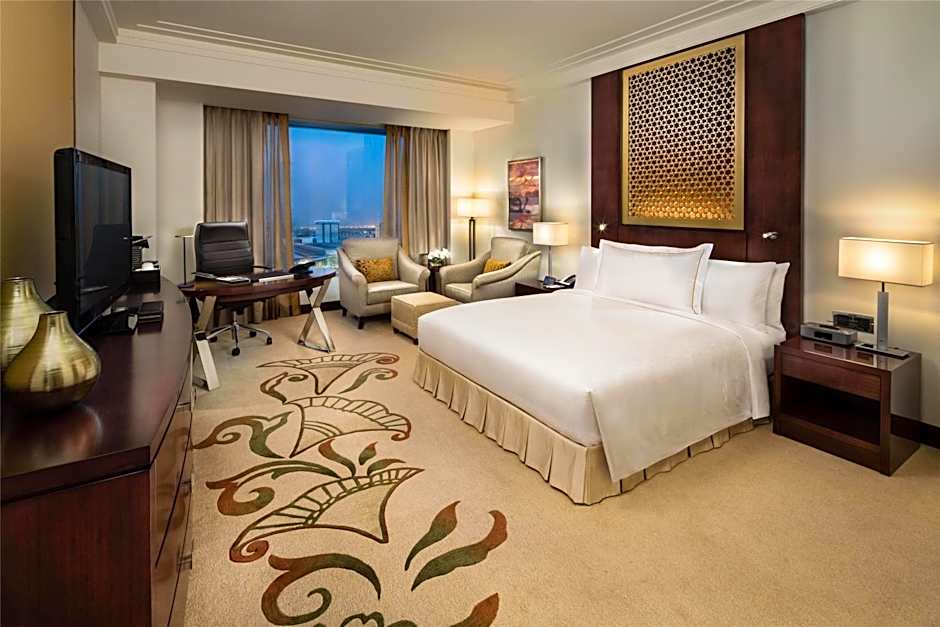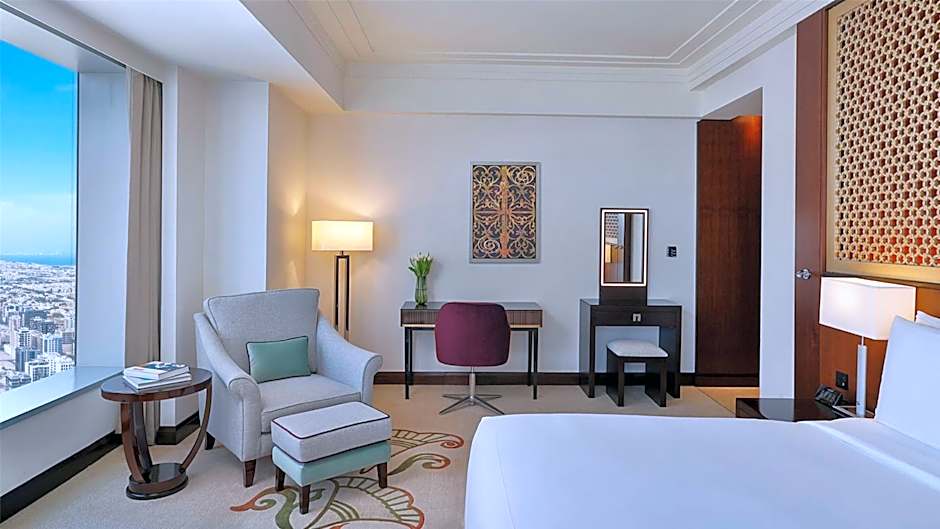 Featuring views of the Arabian Peninsula or the vibrant Sheikh Zayed Road, this luxurious, air-conditioned room offers free WiFi and a separate living area with a satellite flat-screen TV. It offers a Bose® surround sound system, an iPod docking station and a Nespresso® machine. The bathroom is fitted with a shower, bath and free toiletries.