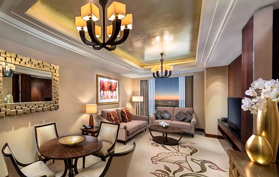 Featuring views of the Arabian Peninsula or the vibrant Sheikh Zayed Road, this extra spacious, air-conditioned suite offers a separate living area with a satellite flat-screen TV. It offers free WiFi, Bose® surround sound system, an iPod docking station and a Nespresso® machine. The bathroom is fitted with a shower and free toiletries.